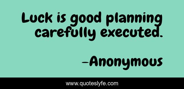 "Anonymous Quotes." Quoteslyfe.com, 2025. Sat. 06 Dec. 2025. <https://www.quoteslyfe.com/quote/Luck-is-good-planning-carefully-executed-274684>.