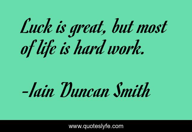 This page presents the quote "Luck is great, but most of life is hard work.". Author of this quote is Iain Duncan Smith. This quote is about life, great, hard work,.