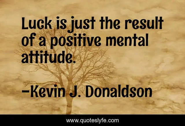 This page presents the quote "Luck is just the result of a positive mental attitude.". Author of this quote is Kevin J. Donaldson. This quote is about positive-mental-attitude, achievement, luck,.