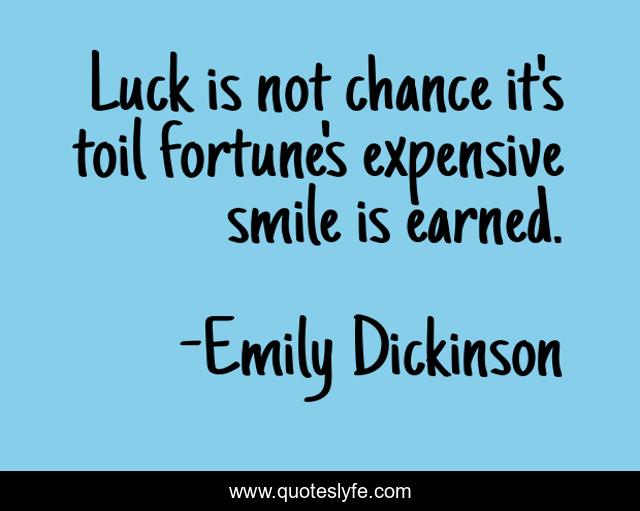 This page presents the quote "Luck is not chance it's toil fortune's expensive smile is earned.". Author of this quote is Emily Dickinson. .