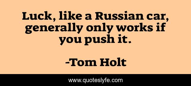 "Tom Holt Quotes." Quoteslyfe.com, 2025. Fri. 05 Dec. 2025. <https://www.quoteslyfe.com/quote/Luck-like-a-Russian-car-generally-only-323082>.