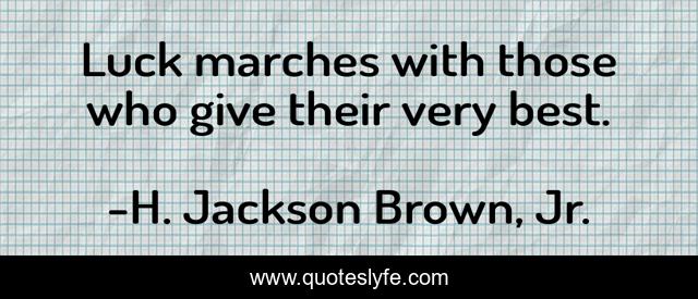 This page presents the quote "Luck marches with those who give their very best.". Author of this quote is H. Jackson Brown, Jr.. This quote is about luck, best, give,.