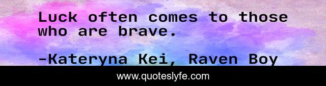 This page presents the quote "Luck often comes to those who are brave.". Author of this quote is Kateryna Kei, Raven Boy. This quote is about life, life-experience, inspirational, survival, wisdom, life-lessons, enthusiasm, raven-boy, war,.