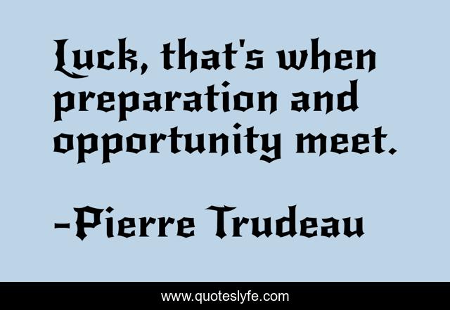 This page presents the quote "Luck, that's when preparation and opportunity meet.". Author of this quote is Pierre Trudeau. This quote is about preparation, opportunity,.
