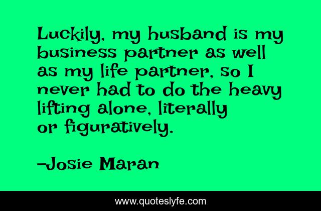 This page presents the quote "Luckily, my husband is my business partner as well as my life partner, so I never had to do the heavy lifting alone, literally or figuratively.". Author of this quote is Josie Maran. This quote is about alone, partner, life,.