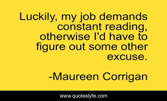 This page presents the quote "Luckily, my job demands constant reading, otherwise I'd have to figure out some other excuse.". Author of this quote is Maureen Corrigan. .