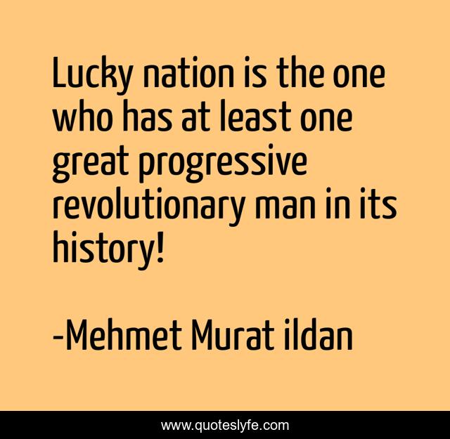 This page presents the quote "Lucky nation is the one who has at least one great progressive revolutionary man in its history!". Author of this quote is Mehmet Murat ildan. This quote is about progressive, atatürk, 19-may, revlutionary, lucky, mustafa-kemal-atatürk, murat-ildan-sözleri, nation, quotes-on-atatürk,.