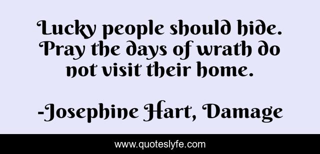 This page presents the quote "Lucky people should hide. Pray the days of wrath do not visit their home.". Author of this quote is Josephine Hart, Damage. .