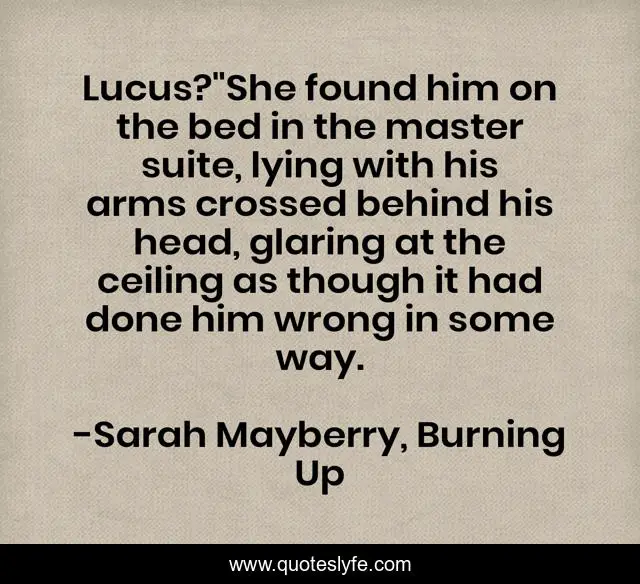 "Sarah Mayberry, Burning Up Quotes." Quoteslyfe.com, 2025. Sat. 06 Dec. 2025. <https://www.quoteslyfe.com/quote/Lucus-She-found-him-on-the-bed-18973>.