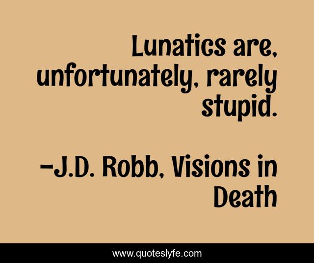 This page presents the quote "Lunatics are, unfortunately, rarely stupid.". Author of this quote is J.D. Robb, Visions in Death. .