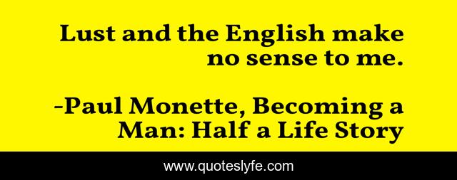 This page presents the quote "Lust and the English make no sense to me.". Author of this quote is Paul Monette, Becoming a Man: Half a Life Story. This quote is about lust, english,.