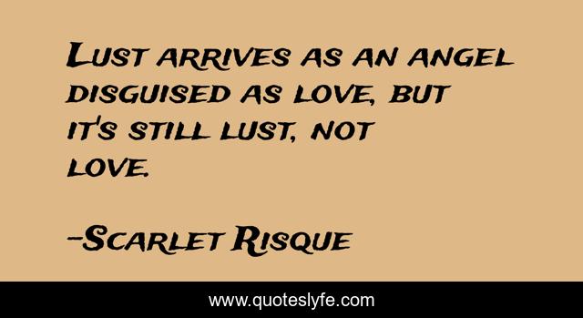 This page presents the quote "Lust arrives as an angel disguised as love, but it's still lust, not love.". Author of this quote is Scarlet Risque. This quote is about lust, lustofinsanity, love, philisophy, affection,.
