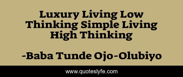 This page presents the quote "Luxury Living Low Thinking Simple Living High Thinking". Author of this quote is Baba Tunde Ojo-Olubiyo. This quote is about higherlife, higher-living, simple-life, simplicity,.