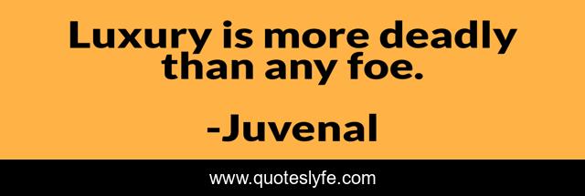 This page presents the quote "Luxury is more deadly than any foe.". Author of this quote is Juvenal. This quote is about enjoyment, pleasure,.