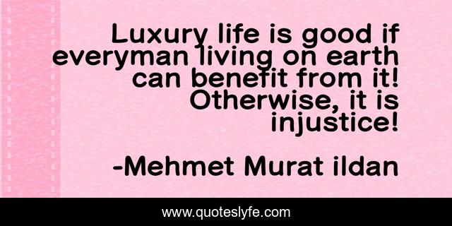 This page presents the quote "Luxury life is good if everyman living on earth can benefit from it! Otherwise, it is injustice!". Author of this quote is Mehmet Murat ildan. This quote is about life, mehmet-murat-ildan, ildan-words-of-wisdom, luxury-life, life-and-sayings, luxury, injustice,.
