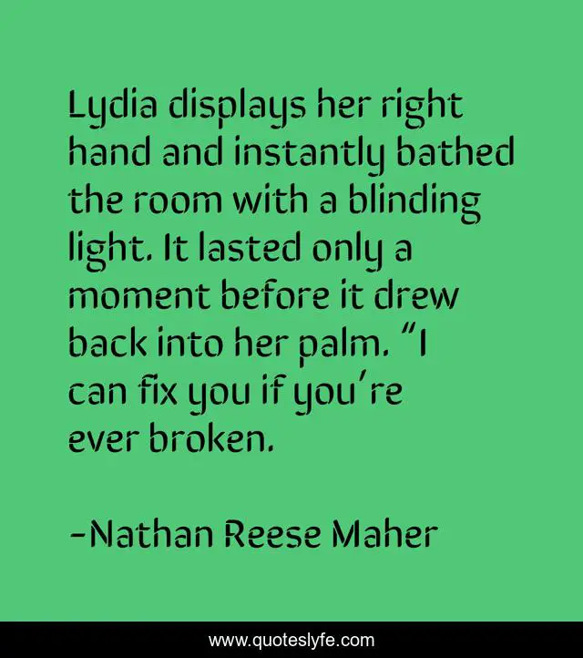 "Nathan Reese Maher Quotes." Quoteslyfe.com, 2025. Mon. 08 Dec. 2025. <https://www.quoteslyfe.com/quote/Lydia-displays-her-right-hand-and-instantly-43880>.