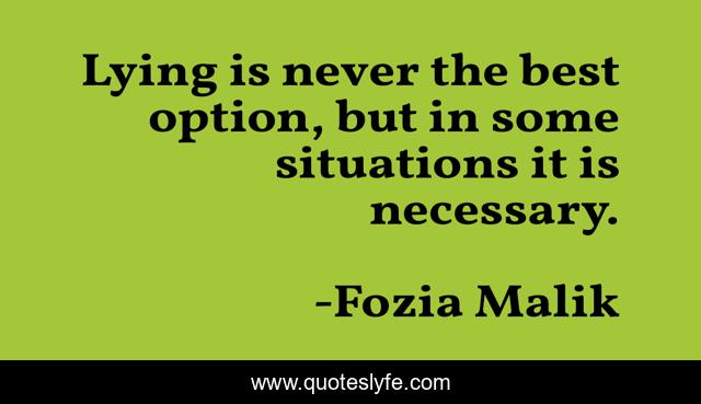This page presents the quote "Lying is never the best option, but in some situations it is necessary.". Author of this quote is Fozia Malik. .