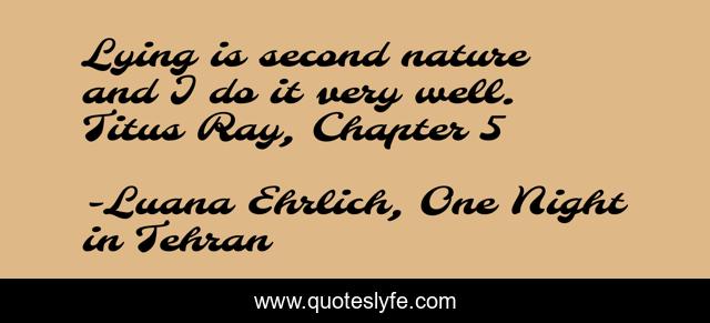This page presents the quote "Lying is second nature and I do it very well. Titus Ray, Chapter 5". Author of this quote is Luana Ehrlich, One Night in Tehran. This quote is about luana-ehrlich, one-night-in-tehran, lying, christian-fiction,.