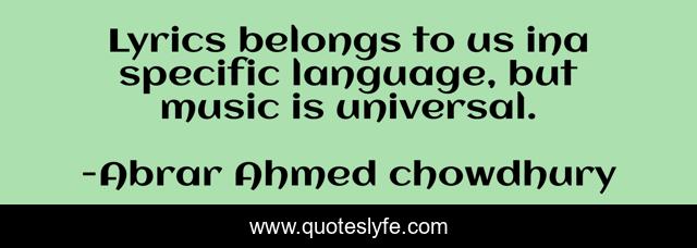 This page presents the quote "Lyrics belongs to us ina specific language, but music is universal.". Author of this quote is Abrar Ahmed chowdhury. .