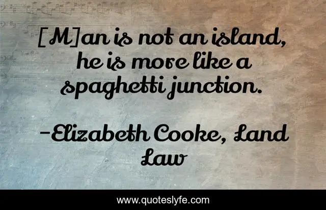 This page presents the quote "[M]an is not an island, he is more like a spaghetti junction.". Author of this quote is Elizabeth Cooke, Land Law. This quote is about property-law, relationships, law,.