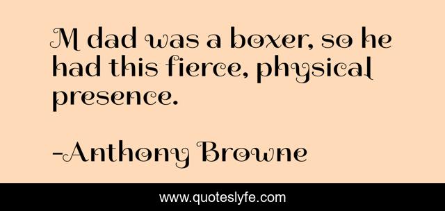 This page presents the quote "M dad was a boxer, so he had this fierce, physical presence.". Author of this quote is Anthony Browne. This quote is about fierce, presence, physical,.