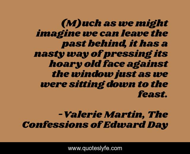 This page presents the quote "(M)uch as we might imagine we can leave the past behind, it has a nasty way of pressing its hoary old face against the window just as we were sitting down to the feast.". Author of this quote is Valerie Martin, The Confessions of Edward Day. .