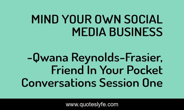 "Qwana Reynolds-Frasier, Friend In Your Pocket Conversations Session One Quotes." Quoteslyfe.com, 2025. Tue. 09 Dec. 2025. <https://www.quoteslyfe.com/quote/MIND-YOUR-OWN-SOCIAL-MEDIA-BUSINESS-88332>.