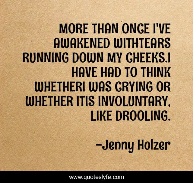 This page presents the quote "MORE THAN ONCE I'VE AWAKENED WITHTEARS RUNNING DOWN MY CHEEKS.I HAVE HAD TO THINK WHETHERI WAS CRYING OR WHETHER ITIS INVOLUNTARY, LIKE DROOLING.". Author of this quote is Jenny Holzer. This quote is about drool, tears, involuntary-acts, jenny-holzer,.