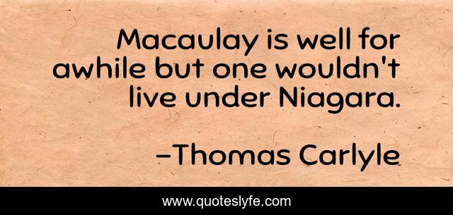 This page presents the quote "Macaulay is well for awhile but one wouldn't live under Niagara.". Author of this quote is Thomas Carlyle. This quote is about calumny, insults,.
