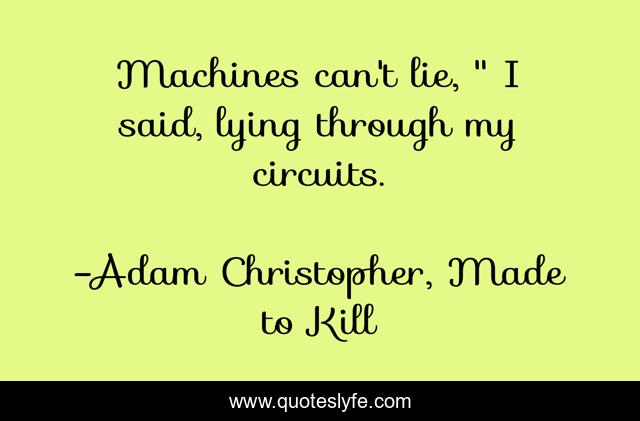 "Adam Christopher, Made to Kill Quotes." Quoteslyfe.com, 2025. Fri. 05 Dec. 2025. <https://www.quoteslyfe.com/quote/Machines-can-t-lie-I-said-lying-149473>.