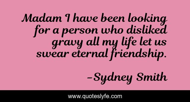 This page presents the quote "Madam I have been looking for a person who disliked gravy all my life let us swear eternal friendship.". Author of this quote is Sydney Smith. .