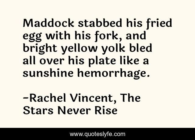 "Rachel Vincent, The Stars Never Rise Quotes." Quoteslyfe.com, 2025. Fri. 05 Dec. 2025. <https://www.quoteslyfe.com/quote/Maddock-stabbed-his-fried-egg-with-his-235916>.