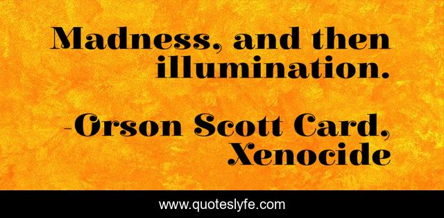 "Orson Scott Card, Xenocide Quotes." Quoteslyfe.com, 2025. Fri. 05 Dec. 2025. <https://www.quoteslyfe.com/quote/Madness-and-then-illumination-157036>.