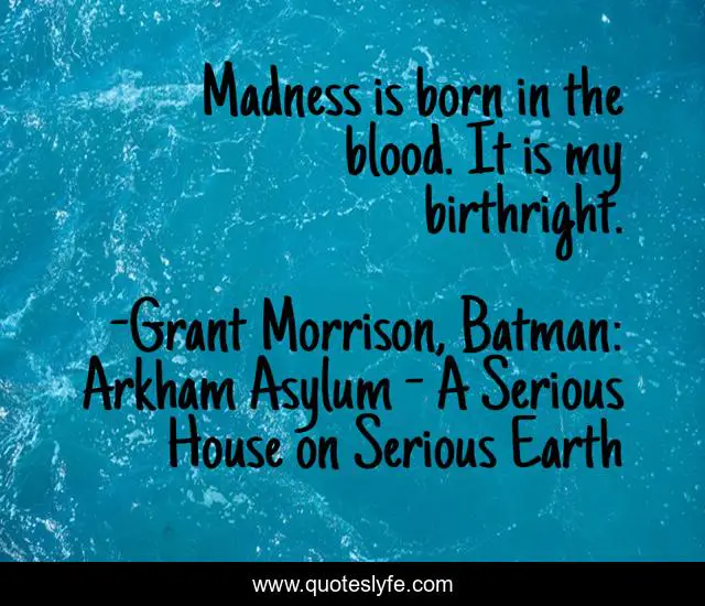 "Grant Morrison, Batman: Arkham Asylum - A Serious House on Serious Earth Quotes." Quoteslyfe.com, 2025. Tue. 09 Dec. 2025. <https://www.quoteslyfe.com/quote/Madness-is-born-in-the-blood-It-220981>.