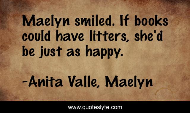 "Anita Valle, Maelyn Quotes." Quoteslyfe.com, 2025. Fri. 05 Dec. 2025. <https://www.quoteslyfe.com/quote/Maelyn-smiled-If-books-could-have-litters-43634>.