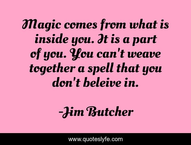 This page presents the quote "Magic comes from what is inside you. It is a part of you. You can't weave together a spell that you don't beleive in.". Author of this quote is Jim Butcher. .