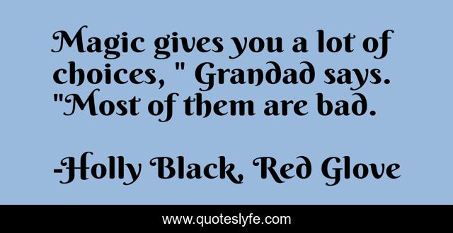 This page presents the quote "Magic gives you a lot of choices, " Grandad says. "Most of them are bad.". Author of this quote is Holly Black, Red Glove. This quote is about curse-workers, magic, choices,.