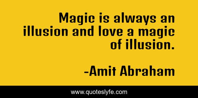 This page presents the quote "Magic is always an illusion and love a magic of illusion.". Author of this quote is Amit Abraham. This quote is about love, magic, illusion, affection,.