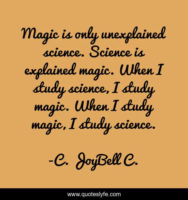 "C. JoyBell C. Quotes." Quoteslyfe.com, 2025. Sat. 13 Dec. 2025. <https://www.quoteslyfe.com/quote/Magic-is-only-unexplained-science-Science-is-99069>.