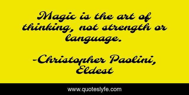 This page presents the quote "Magic is the art of thinking, not strength or language.". Author of this quote is Christopher Paolini, Eldest. This quote is about thinking, magic, oromis,.