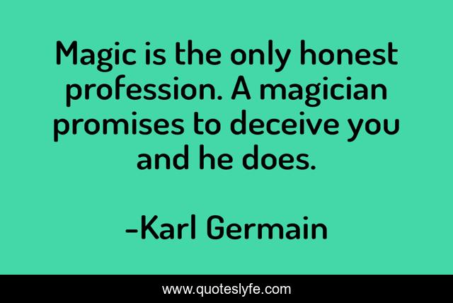 "Karl Germain Quotes." Quoteslyfe.com, 2025. Fri. 05 Dec. 2025. <https://www.quoteslyfe.com/quote/Magic-is-the-only-honest-profession-A-133466>.