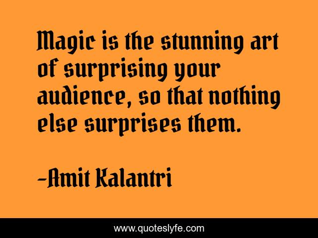 "Amit Kalantri Quotes." Quoteslyfe.com, 2025. Mon. 08 Dec. 2025. <https://www.quoteslyfe.com/quote/Magic-is-the-stunning-art-of-surprising-65800>.