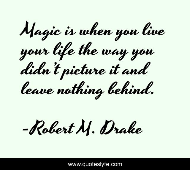 "Robert M. Drake Quotes." Quoteslyfe.com, 2025. Fri. 05 Dec. 2025. <https://www.quoteslyfe.com/quote/Magic-is-when-you-live-your-life-90826>.
