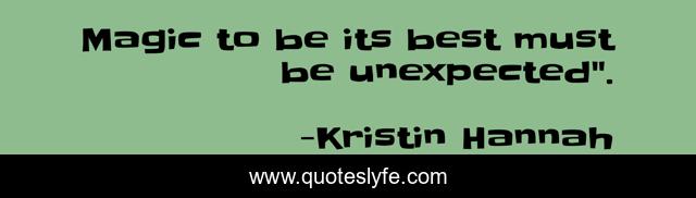 This page presents the quote "Magic to be its best must be unexpected".". Author of this quote is Kristin Hannah. This quote is about love, magic, inspirational, affection, enthusiasm,.