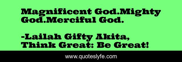 "Lailah Gifty Akita, Think Great: Be Great! Quotes." Quoteslyfe.com, 2025. Mon. 08 Dec. 2025. <https://www.quoteslyfe.com/quote/Magnificent-God-Mighty-God-Merciful-God-124058>.