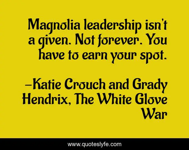 "Katie Crouch and Grady Hendrix, The White Glove War Quotes." Quoteslyfe.com, 2025. Fri. 05 Dec. 2025. <https://www.quoteslyfe.com/quote/Magnolia-leadership-isn-t-a-given-Not-133674>.