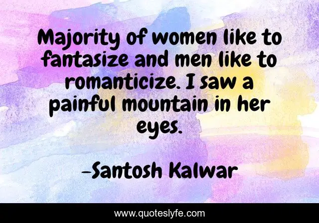 This page presents the quote "Majority of women like to fantasize and men like to romanticize. I saw a painful mountain in her eyes.". Author of this quote is Santosh Kalwar. This quote is about romance, eyes, woman,.