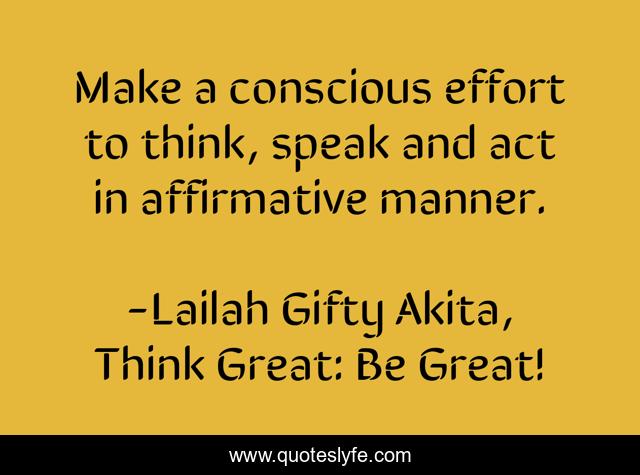 "Lailah Gifty Akita, Think Great: Be Great! Quotes." Quoteslyfe.com, 2025. Fri. 05 Dec. 2025. <https://www.quoteslyfe.com/quote/Make-a-conscious-effort-to-think-speak-95194>.