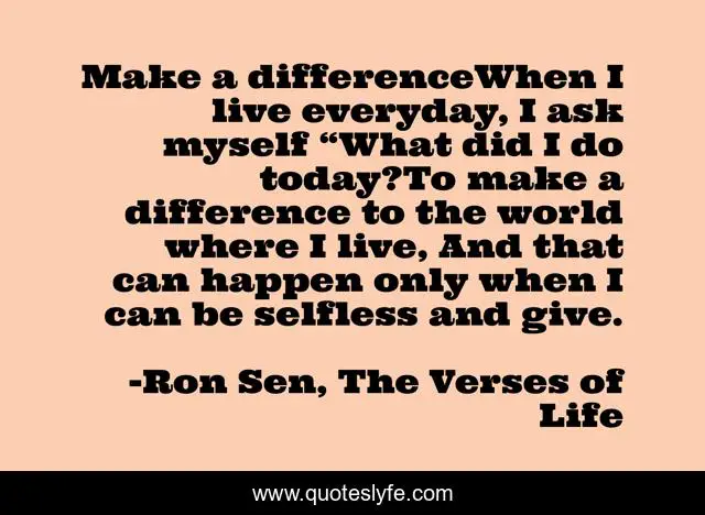 "Ron Sen, The Verses of Life Quotes." Quoteslyfe.com, 2025. Sat. 06 Dec. 2025. <https://www.quoteslyfe.com/quote/Make-a-differenceWhen-I-live-everyday-I-245773>.