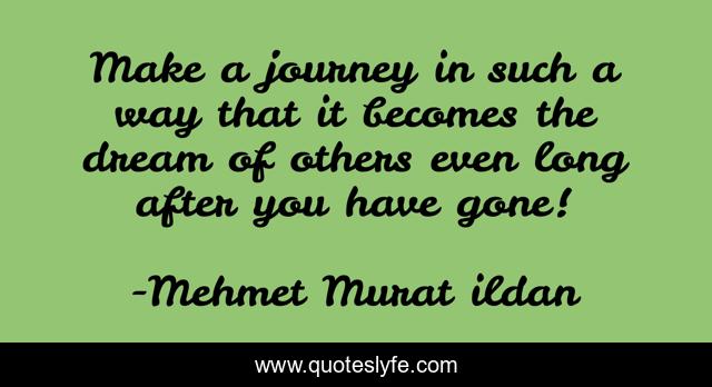 This page presents the quote "Make a journey in such a way that it becomes the dream of others even long after you have gone!". Author of this quote is Mehmet Murat ildan. This quote is about journey, dream, long-after, dreams, murat-ildan,.
